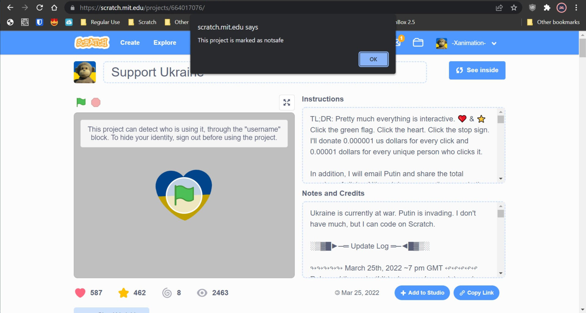 This site contains many extensions (inaccessible on mobile) and bookmarklets (which work with any modern browser) to improve your experience and content with Scratch. Scroll down to check them out!Created by Scratch × Discord's sudos.